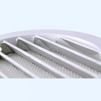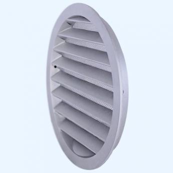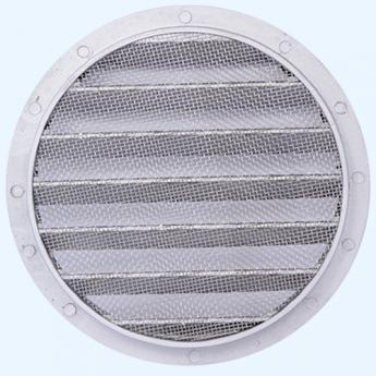 Серия РКМ. Решетки с горизонтальными наклонными жалюзи, защитной сеткой и фланцем, выполнены из алюминия. Применяются для наружного монтажа.