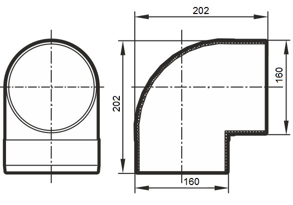 Тип:Круглое сечение (диаметр 160 мм), Колено