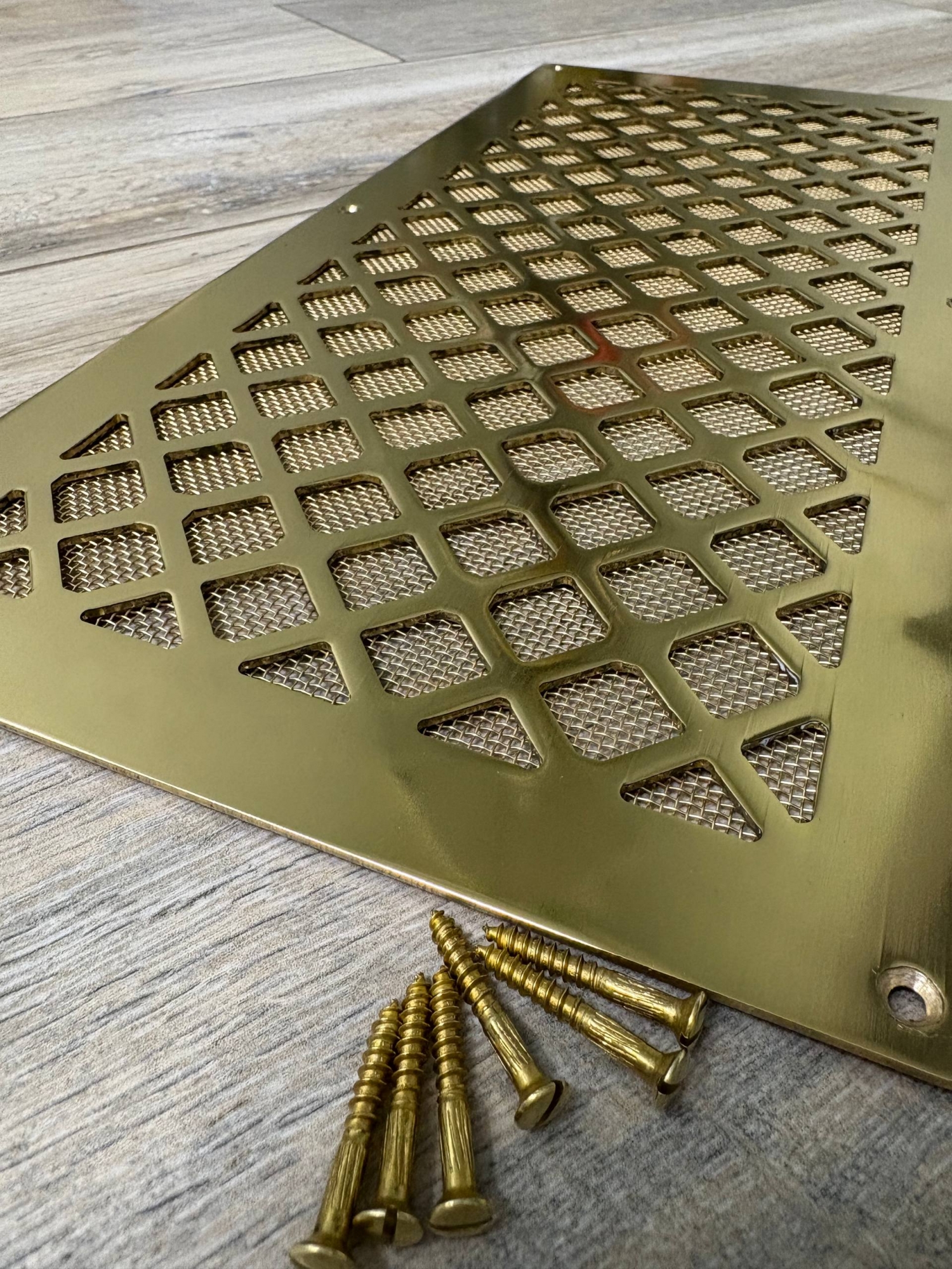 Вентиляционная решётка латунная полированная с сеточкой и шурупами ЛР18 400х200 в интернет-магазине «ВЕНТФОМ». Заказать с доставкой! Тел.: +7 (925) 201-33-89.